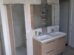 – Au premier étage : Une chambre (cheminée décorative) avec placard intégré, une salle de bain dans laquelle (baignoire, double vasque avec meuble, W.C., armoire de toilette, rangement – place pour un sèche-linge) ;